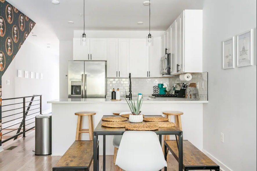 This spacious 3-bedroom, 3-bathroom bottom unit combines style and convenience for families or business travelers. With easy access to DC’s best, it’s the perfect urban escape.